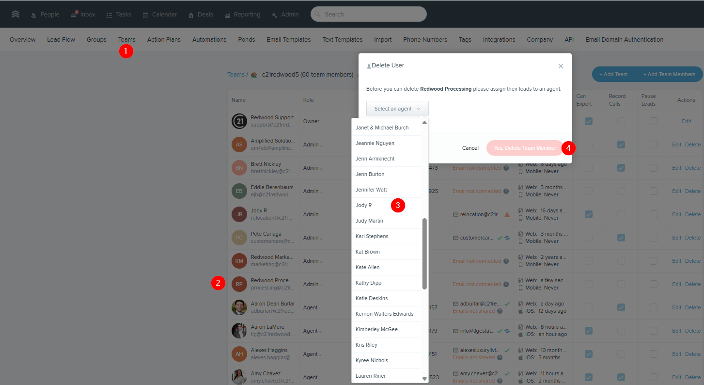 - If agent is still on the “Active Team Members” list, click on the profile and hit “Deactivate”