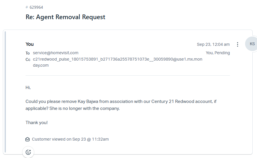 - If the agent is still with Century 21, we need to reach out to the Mel/ASM/EVP to have it deleted.