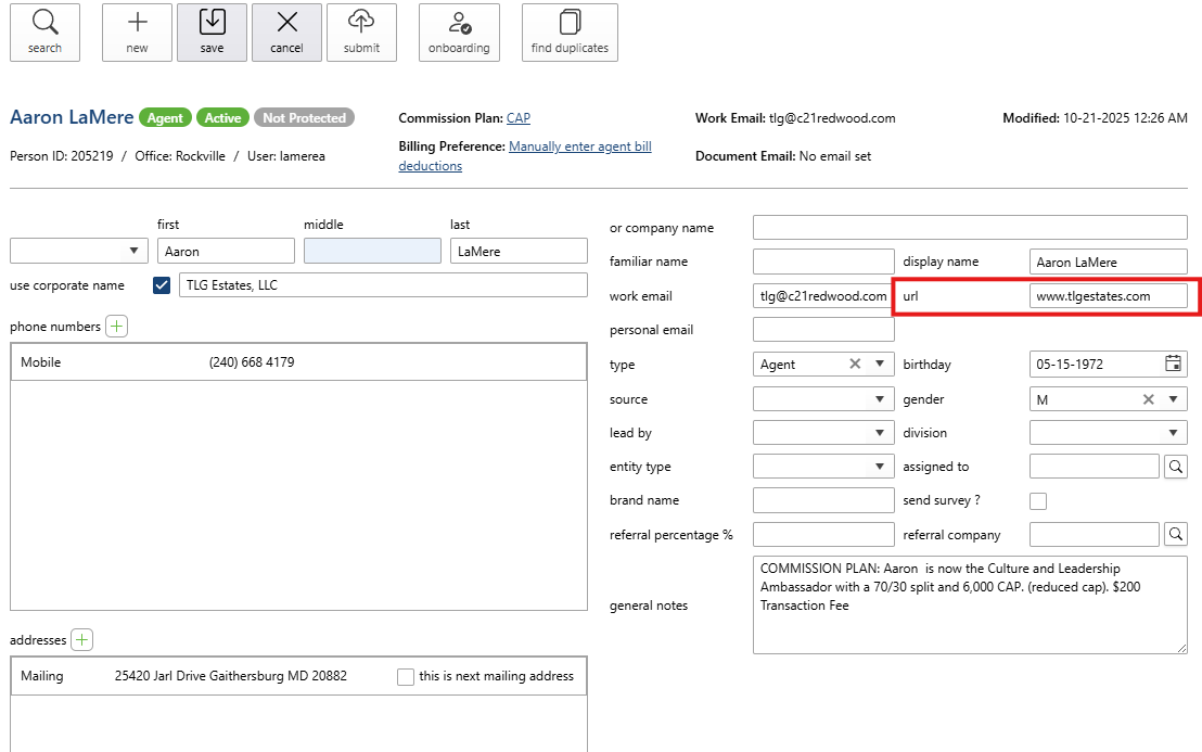 Please Note: When onboarding an agent that was previously with Century 21 Redwood Realty, do not create a new Darwin Profile for agent. You will need to reactivate the terminated profile.