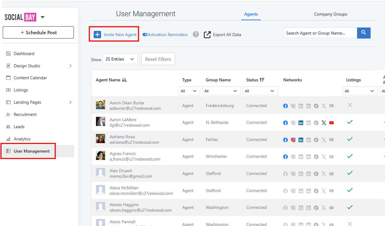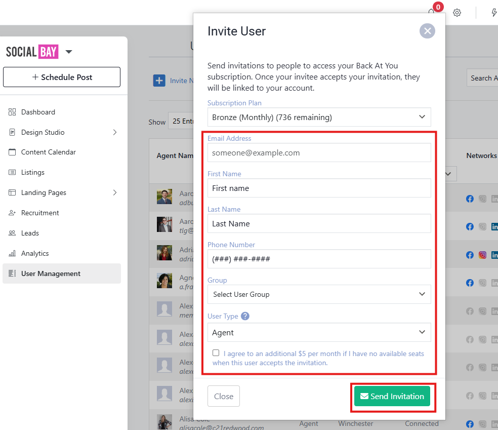 Click on Invite New Agent and fill out the required fields and click Send Invitation