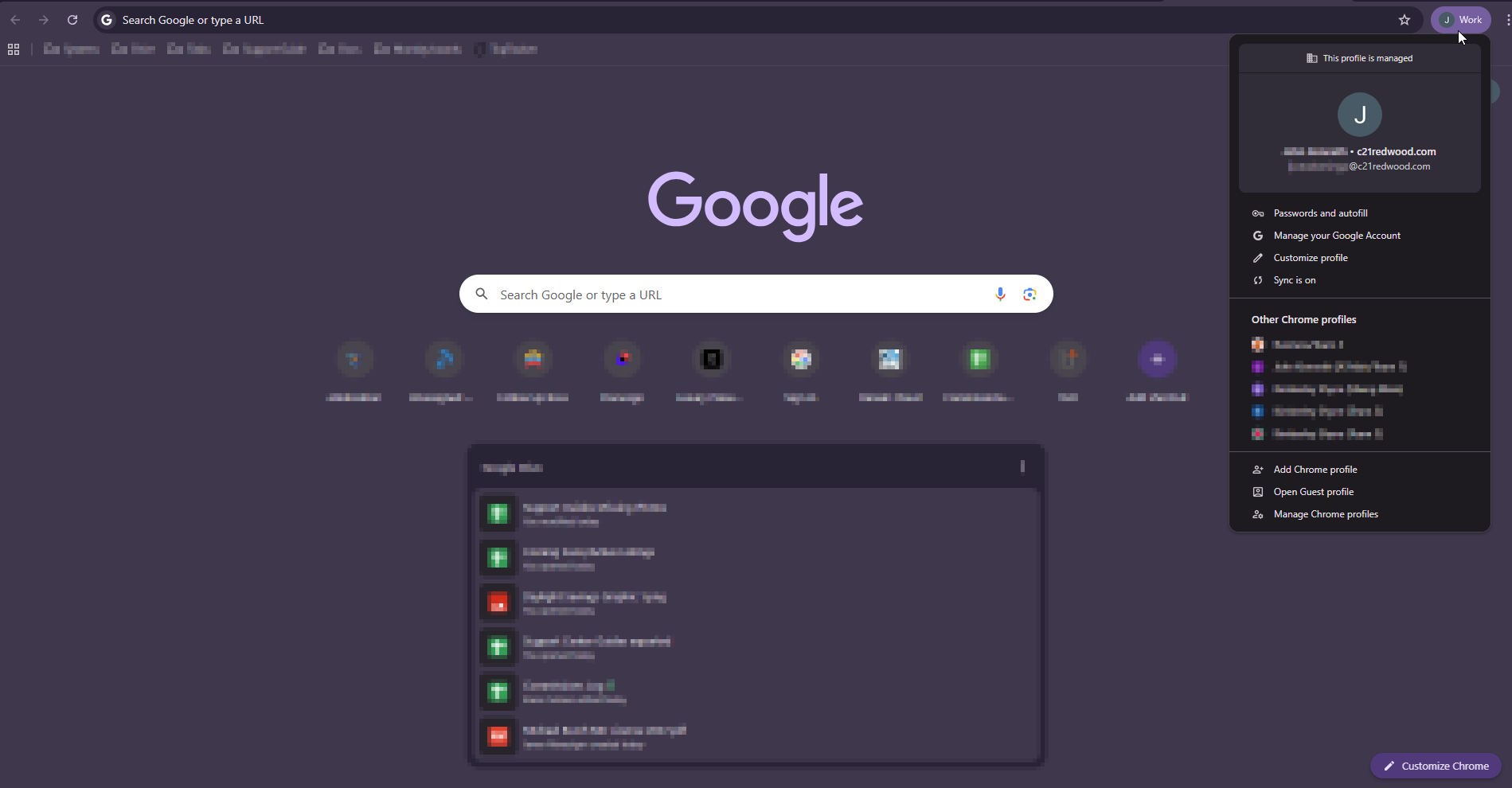 Redwood recommends you use your Redwood Google Workspace account for at least one of your Chrome Profiles. This will make it super convenient for you to access some of your apps in accessRedwood (especially Marketing Studio), and your Redwood email, which is powered by Gmail.