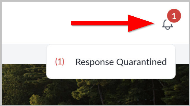 - Quarantined – Surveys that were caught in the quarantine filter; responses that are identified as having failed one or more of these checks and validations are automatically quarantined. If a survey is quarantined, the survey response and testimonial will not be published until it has been released a request to review has been completed. You will receive an email notifying you that the survey response has been quarantined. . These are also highlighted in the Notification bell as displayed below.