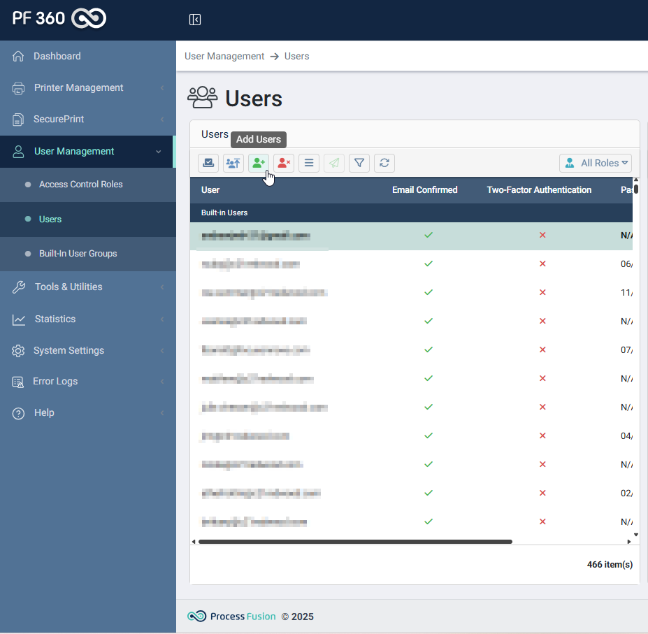 - Click Manage Users (left -hand side menu). This section will display all active users.