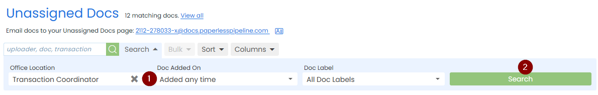 Step 1: Search for Transaction Concierge Docs in Unassigned
