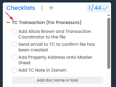 - Add TC Transaction (For Processors) checklist to the file and check off tasks once completed.