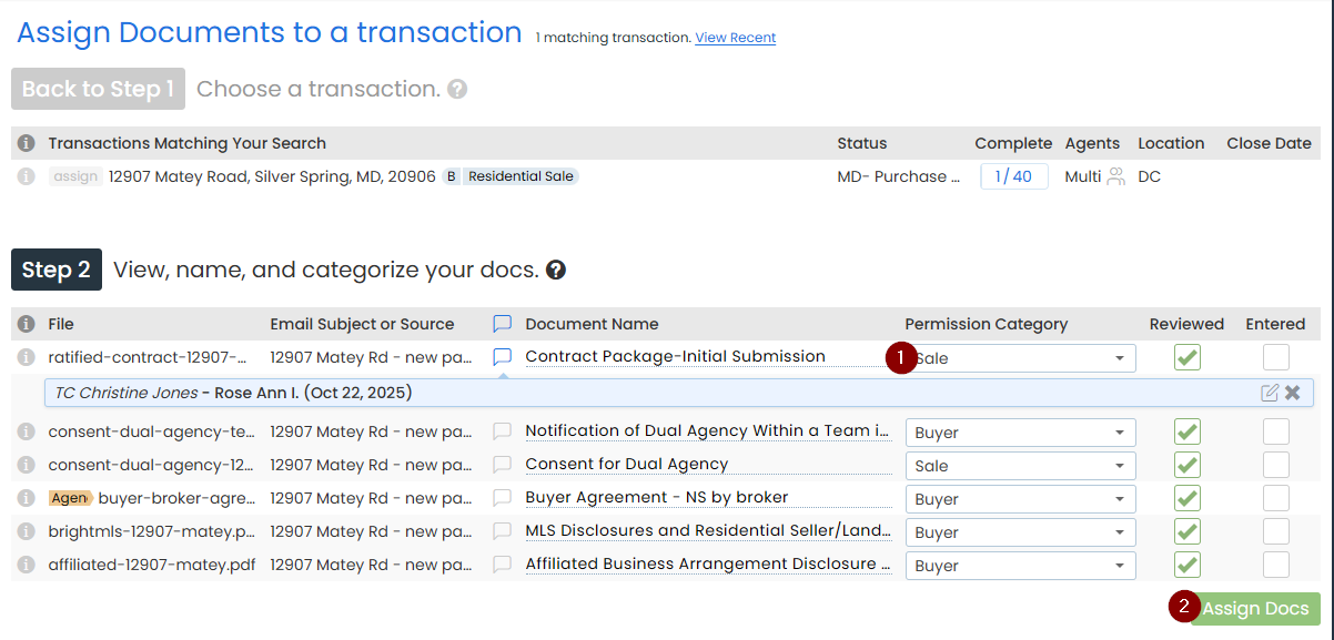 - Add the Transaction Coordinator assigned to that agent (reference TC + Agent Assignment spreadsheet)