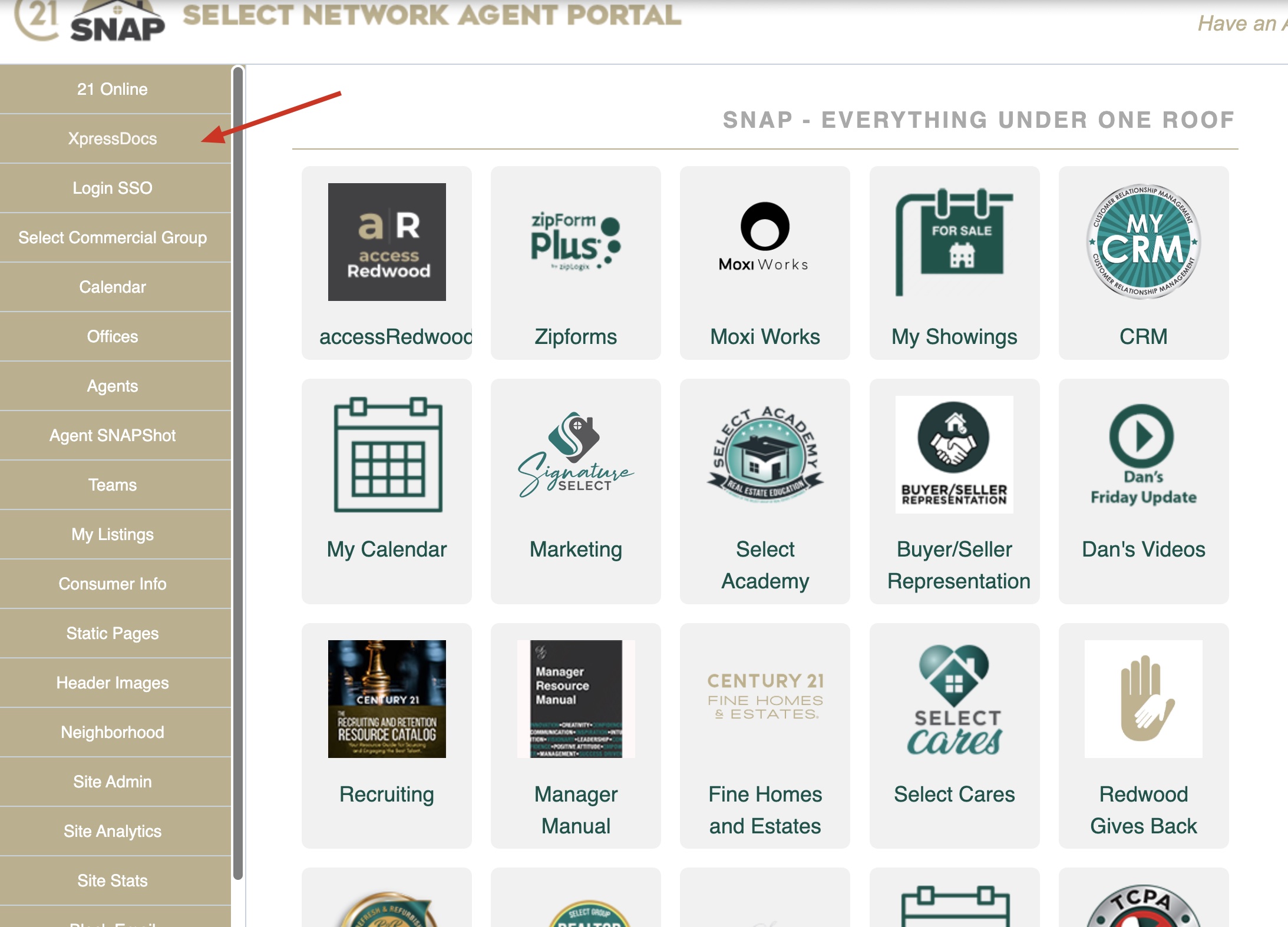 Xpressdocs can be accessed via the SNAP portal on the left-hand menu.